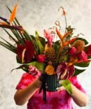 Un diseño fresco y vibrante compuesto de flores tropicales como ave del paraíso, ginger, anturios, rosas y follaje , en base de cerámica. Perfecto para regalar en cualquier ocasión o decorar cualquier espacio con un toque exótico y elegante.