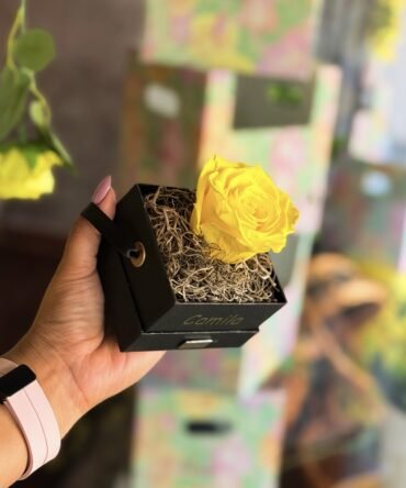 Una explosión de ternura y elegancia en un solo arreglo. Este encantador canasto de madera reúne una armoniosa combinación de rosas fucsias, rosadas y mini rosas, acompañadas de delicadas flores blancas como crisantemos y lirios en botón. Completado con follaje fresco y toques de eucalipto, es un regalo ideal para decir lo mucho que le quieres.